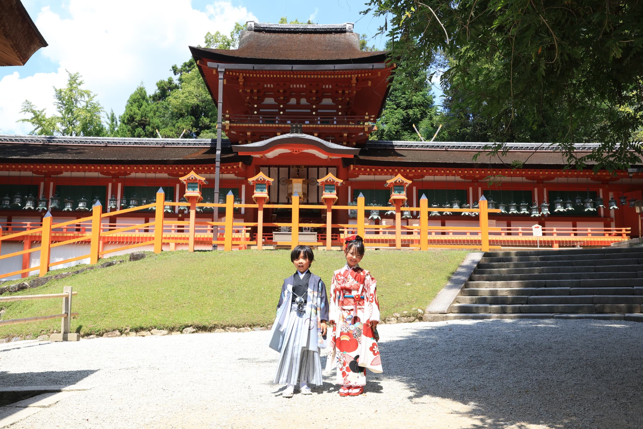 7歳の娘と、お友達の男の子と一緒に、奈良の春日大社で七五三のお参りを行いました。