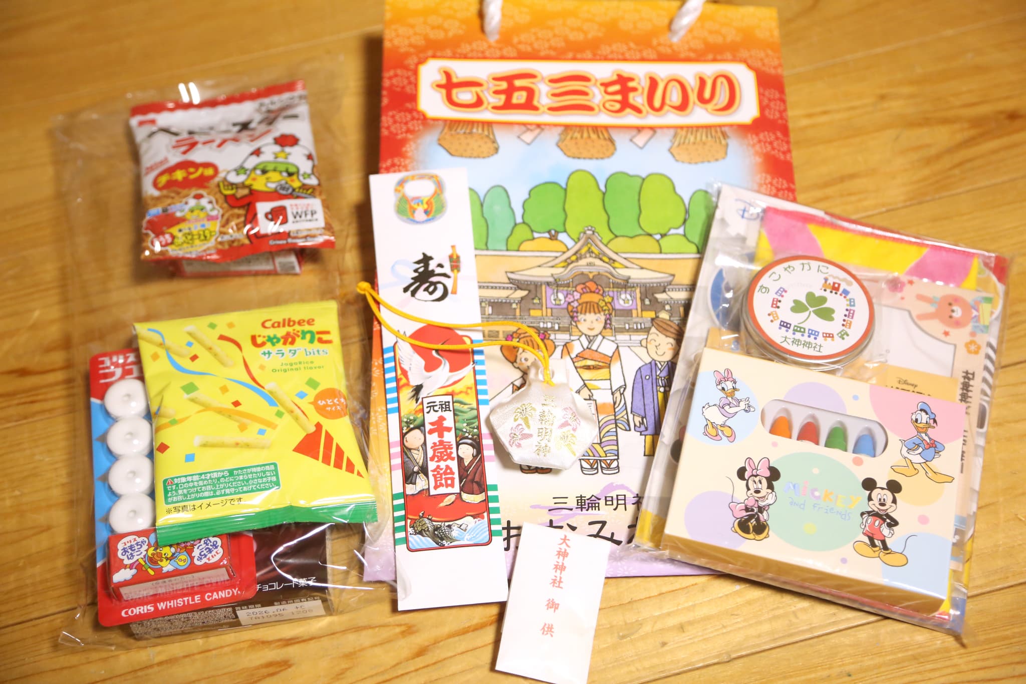など沢山いただきました。どれも温かいお気持ちのこもった品ばかりで、風船を一番喜んでいた子どもも、帰宅後にはひとつひとつ手に取りながら嬉しそうに眺めていました。大神神社でのご祈祷は、落ち着いた雰囲気の中で進み、家族にとって心に残る大切な時間となりました。