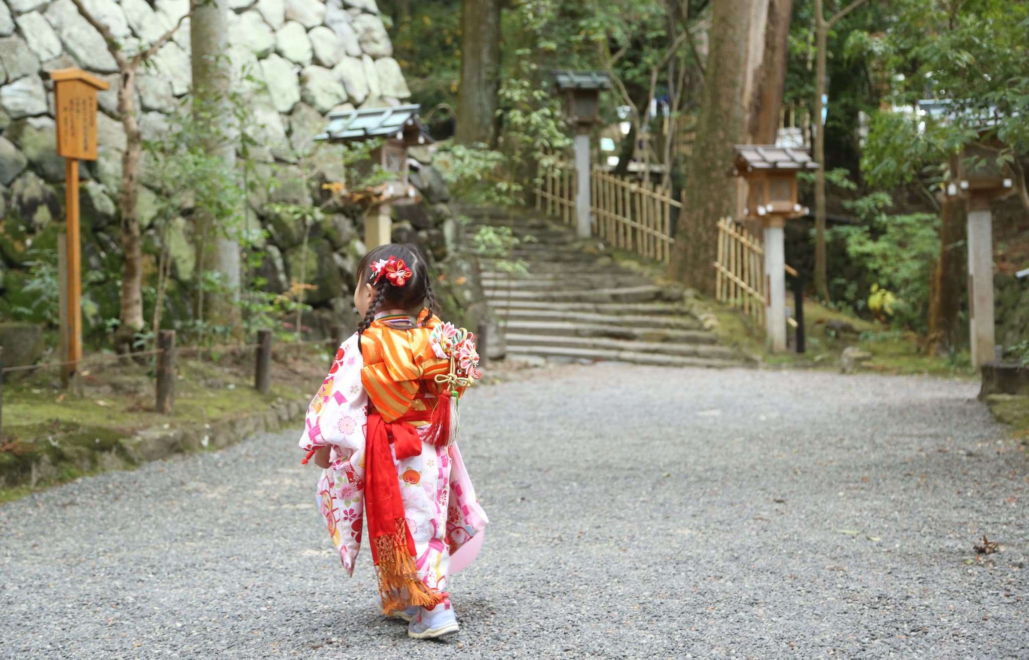 神社内はほとんどが砂利道のため、草履よりも歩きやすい靴が適しています。私はスニーカーでお参りしましたが、最近は草履風のデザインで見た目もきれいな靴も販売されているようですので、全体のコーディネートが気になる方にはそういったものも良いと思います。